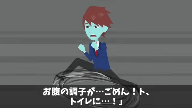 男性社員は話している途中で「お腹の調子が…ごめん!ト、トイレに…!」と言い、走っていきました。 それを見た女性社員は「わお…これはなかなか…」と男性社員を心配します。
