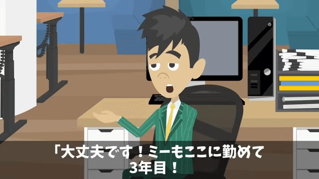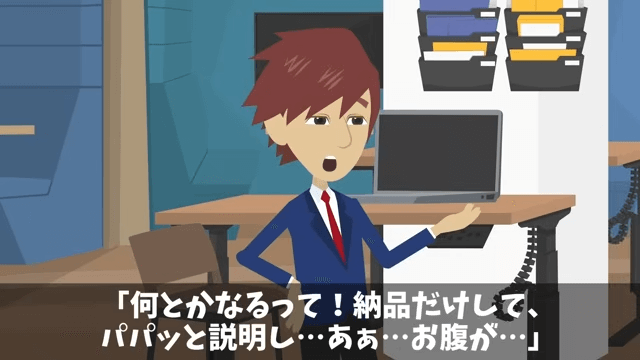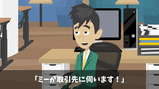 男性社員は今日はどうしても新しい食材の説明をしなければならないと話します。 それを聞いた主人公は、自分が代わりに取引先に行くと申し出ました。