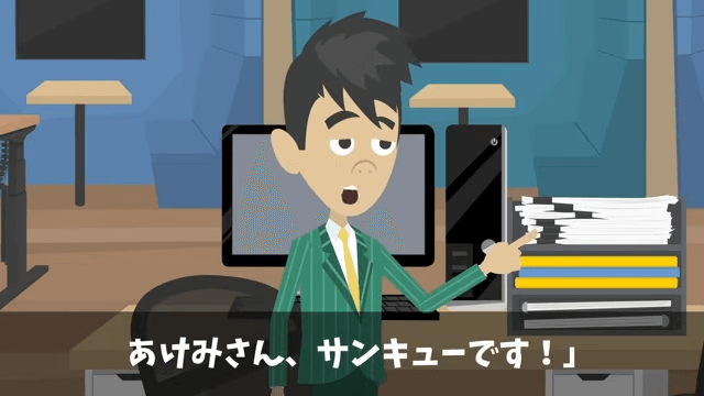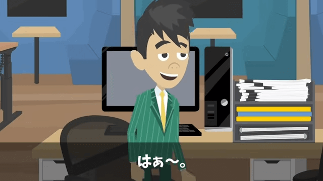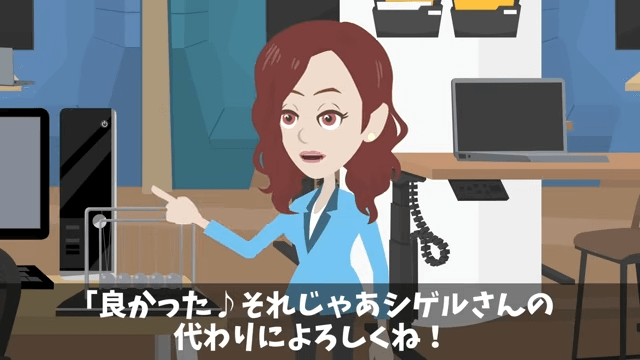 女性社員は取引先のオーナーはいい人だから大丈夫だと主人公に伝えます。 そして女性社員は、男性社員の代わりによろしくと主人公に言いました。