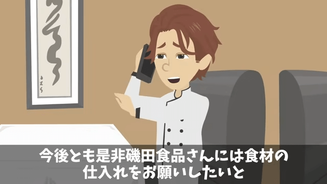 今回は『長年取引した高級料亭に裏切られた結果』を紹介します。 板前はオーナーが新しい仕入先を準備したと急に言ってきたことを男性社員に説明します。 それを聞いた男性社員は「たまたま私が伺えなかったからなのかもしれませんが、ガッカリです!」と伝えて…。