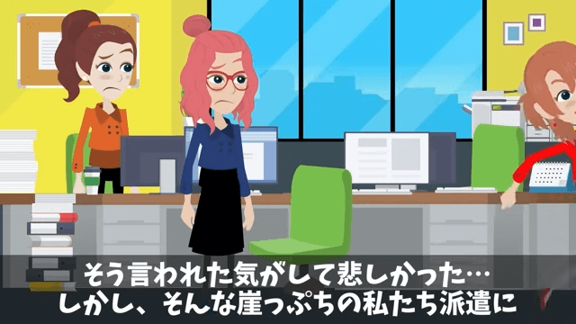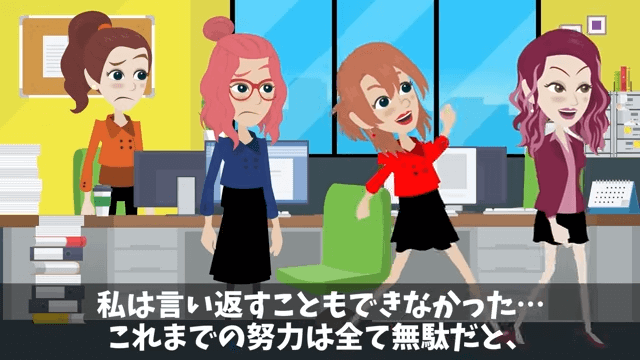 新社長は「それでは今後は立場をわきまえるように」と主人公たちに伝えました。 それを聞いた主人公は、これまでの努力が無駄だと言われた気がして悲しい気持ちになります。