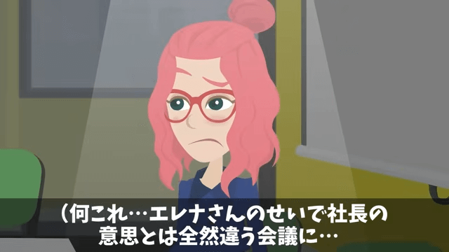 社員の発言のせいで、前の社長の意思とは全然違う会議になってしまいます。 そこで主人公が「あ、あの!私からも…」と発言しようとするのですが…。
