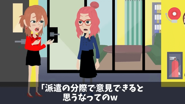 結局主人公は新社長に無視されたまま、会議が終わってしまいます。 その後、社員が「派遣の分際で意見できると思うなっての」と主人公に言ってきました。