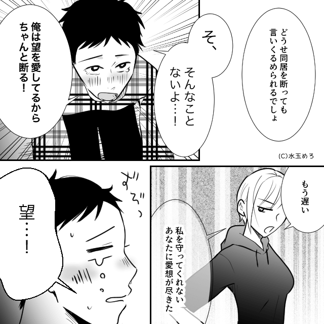 すると夫は「母さんとの同居を断るよ!」と謝罪をしてきますが、愛想が尽きていた主人公は「もう遅い」と答えたのでした。