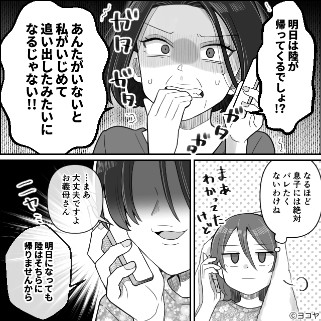 そんな義母に、主人公は「明日になっても彼はそちらに帰りませんから」と伝え…。