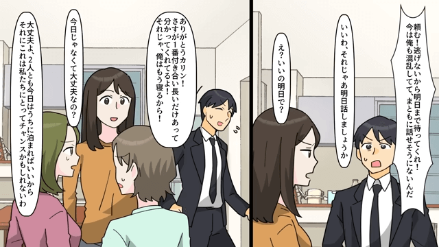 今回は『浮気相手「今すぐ離婚してください!」とクローゼットに押し込まれた話』を紹介します。 夫が三重生活をしていることを知った主人公は、夫を糾弾するためにもう1人の浮気相手にも協力を求めます。 そして10日後、主人公は帰宅した夫に「おかえり、ちょっと今日話したいことあるんだけどいい?」と声をかけました。