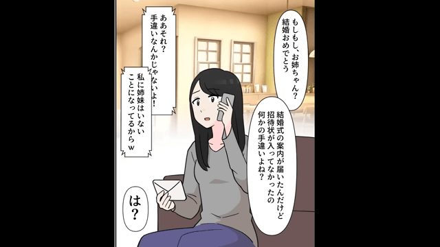 私「結婚おめでとう。ところで招待状が入ってないんだけど…」姉「ああそれ?」直後⇒姉の返答に絶句…