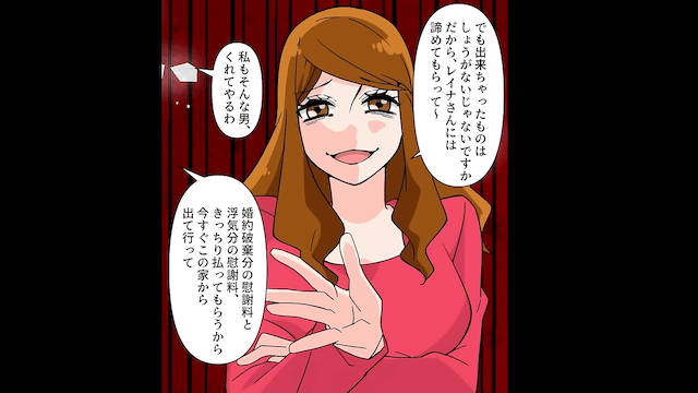 そんなとき、彼氏と彼氏の幼なじみの浮気が発覚して婚約破棄を突きつけられたため、主人公は家が自分名義であることを伝え、2人を家から追い出そうとしたのでした。