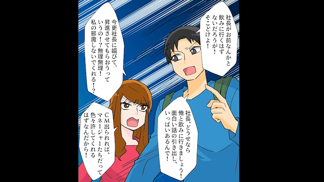 今回は『10年間同棲した婚約者「婚約破棄で!」⇒言う通りにした結果』を紹介します。 社長にすり寄り「CM出させてくださーい!」と媚びを売った彼氏の幼なじみ。 しかし社長は「そのお話は白紙になりました」と冷静に返事をして…。