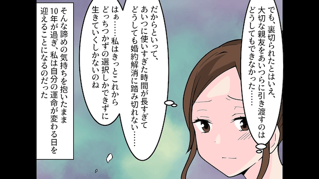 それから10年後の現在、実は浮気を続けていた婚約者と親友が、主人公に婚約破棄を突きつけてきて…。