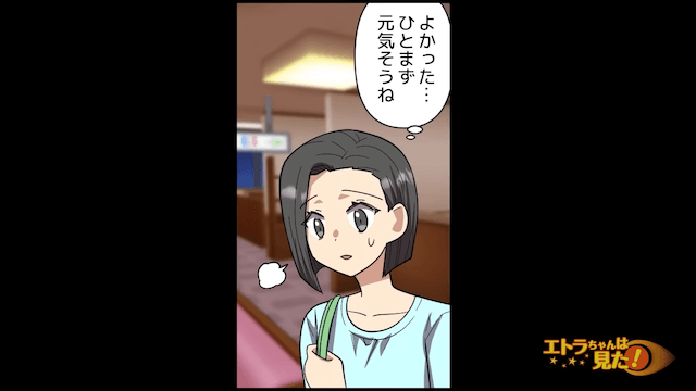 元気な姿を見てホッとする主人公