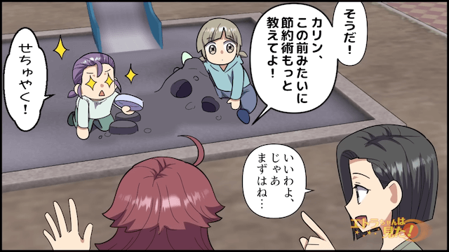 節約のためカフェに行けなくなり、公園で遊ぶようになったママ友。 ママ友の義母に監視されることが窮屈なようで、ママ友は愚痴ばかり言います。