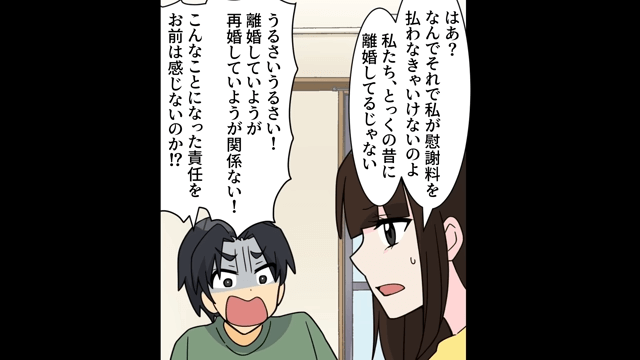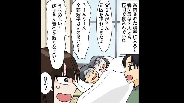 1人で行くのは無謀だと思った主人公は、今の夫と一緒に元夫の義実家に行くことにしました。 すると元夫は、主人公が掃除と介護に来なかったせいで義両親に不幸な事態が起きたと怒ります。
