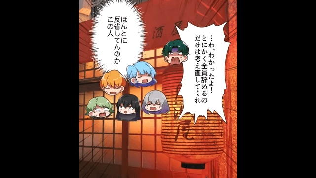 店長の態度に呆れたスタッフたちは店を辞めると言い始めます。 それに対し店長は「とにかく全員辞めるのだけは考え直してくれ」と言うのですが…。