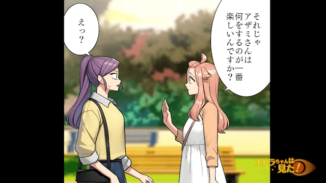 すると友人が「それじゃあなたはなにをするのが1番楽しいんですか?」と彼女に質問をして…。