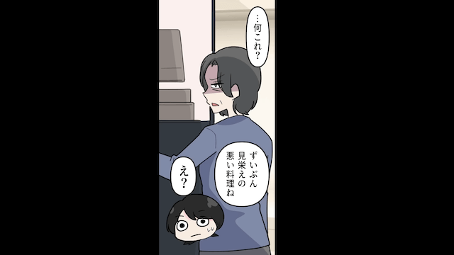 主人公が夫に条件を突きつけて「もしそれが嫌なら同居は断ることね」と告げると、夫は条件をのんで家事をすることに。 そして同居が始まり、夫はきちんと義両親の食事を作ったのですが、それを見た義母が「ずいぶん見栄えの悪い料理ね」と文句を言い始めて…。
