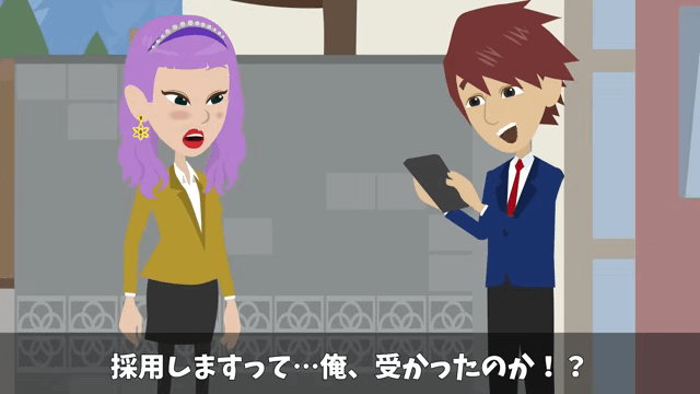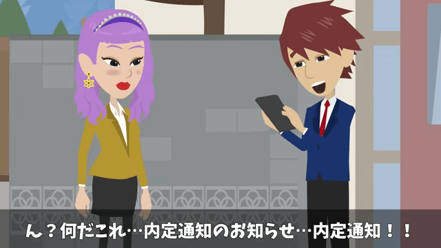 主人公が「また今度な!」と言うと、幼なじみも「じゃあまたね!」と返しました。 そして主人公がスマホを確認すると、なんと内定の通知が来ていて…。