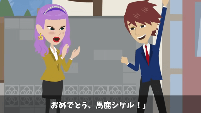 主人公から内定通知を見せられた幼なじみは「嘘でしょ…あはは。まさか本当に1社だけで決めちゃうなんて」と思わず笑ってしまいます。 そして幼なじみが「おめでとう」と言うと、主人公は「ありがとう!」とお礼を言いました。