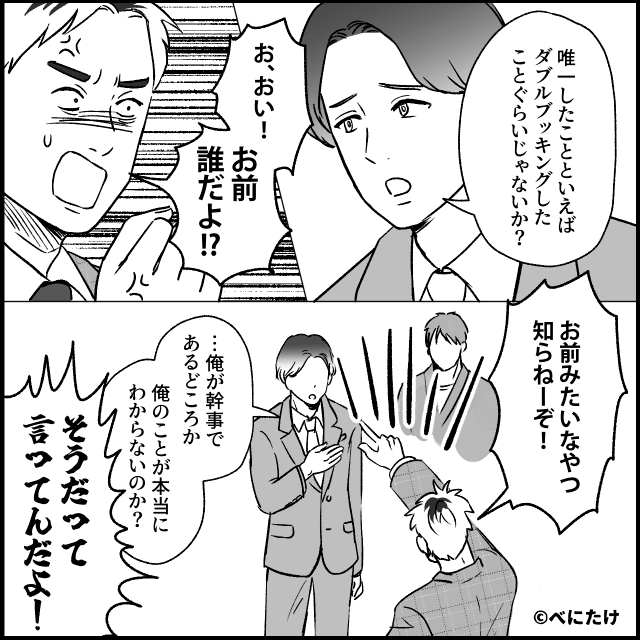 主人公が幹事に連絡をしたことで同窓会の食事はキャンセルされ、会場貸し出しのプランに変更されていました。 変更した幹事というのは実は主人公の店にいた客で、同級生は「お前誰だよ!お前みたいなやつ知らねーぞ!」と困惑します。