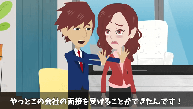 会長は主人公に「君は我が社で働きたくないのかい?」と尋ねました。 主人公は慌てて否定し、ほかの会社には応募せず、この1社のみにかけていたことを会長に伝えて…。