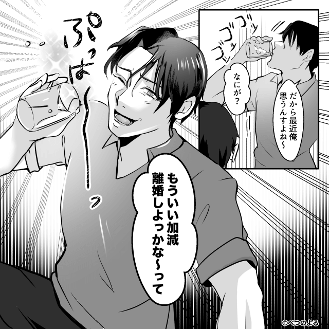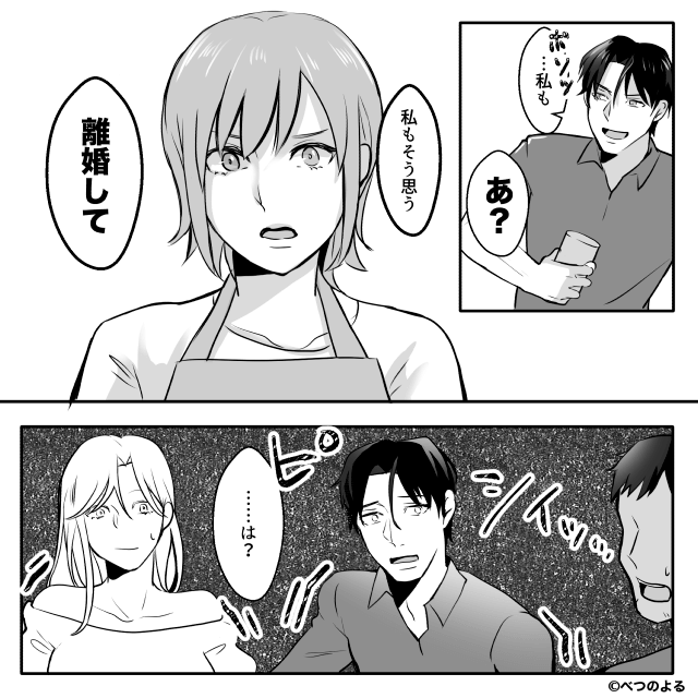 その言葉を聞いた主人公は「私もそう思う、離婚して」と離婚を突きつけ…。