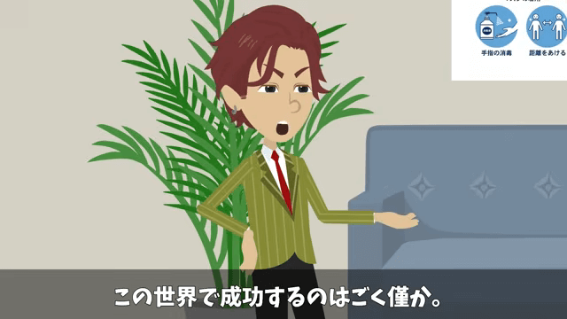 同僚はこの世界で成功する人はごくわずかで、そこに主人公は含まれていないと言います。 それに対し主人公が「えっと…」と答えに困っていると、同僚は「ったく話もまともにできねーのかよ」と呆れて…。