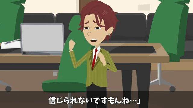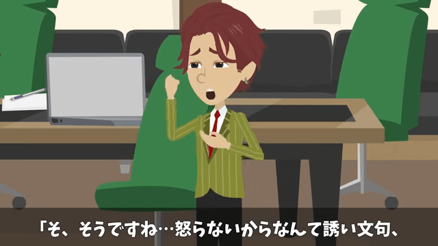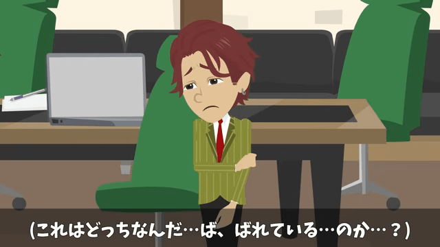 社長は「怒らないから犯人は出てきなさい」と言っても、犯人は名乗り出ないだろうと言います。 一方、同僚は「これはどっちなんだ…バ、バレている…のか…?」と焦っていました。