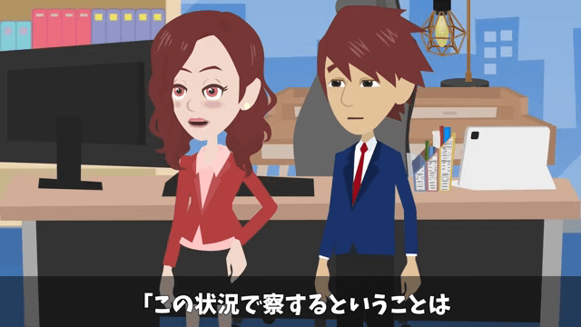 同僚の姿を確認した人事部長は「お前…まさか…!」と焦ります。 その様子を見た社長は「調査の結果は正しかったということね」と言いました。