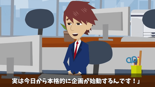 主人公は社長に、今日から本格的に企画が始動することを説明します。 それを聞いた社長は「それはおめでたい日ね。頑張ってね」と主人公を応援してくれました。