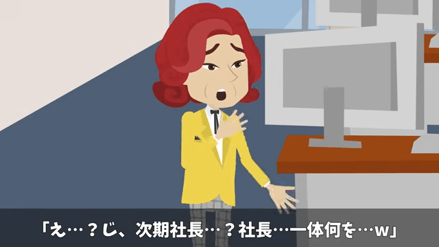 社長は、次期社長候補の主人公になんてひどいことをするのだと人事部長を責めました。 それを聞いた人事部長は「え…?じ、次期社長…?社長…一体何を…」と戸惑い、主人公も「どうして新入社員の俺が次期社長候補に。話が飛びすぎですよ」と言って…。