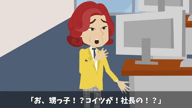 困惑している様子の主人公と人事部長に対し、主人公が自分の甥であることを明かした社長。 それを聞いた人事部長は「お、甥っ子!?コイツが!社長の!?」と驚きました。