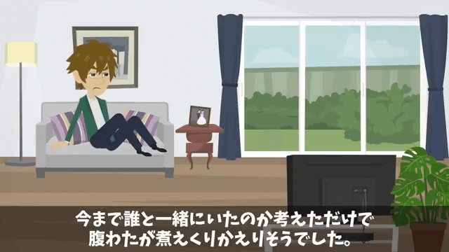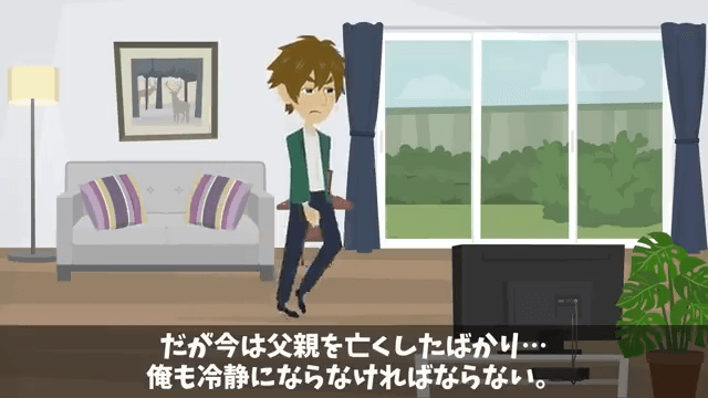 主人公は嘘をついていた妻に腹を立てていましたが、妻は義父を亡くしたばかりのため、冷静になろうと考えます。 そしてその日の夜、主人公は妻が電話していることに気づき…。