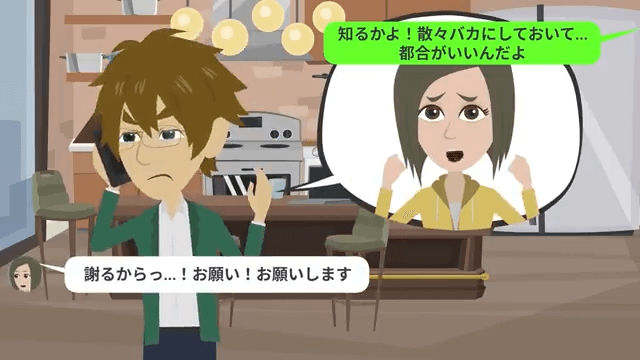 今回は『嫁「親孝行したいから実家に帰るね♪」しかし⇒俺「お義父さんが亡くなったらしい」妻「は!?」』を紹介します。 離婚から半年後、妻は借金が返せなくて困っているから助けてほしいと主人公に泣きついてきました。 主人公はそんな妻に、エリート銀行マンの浮気相手を頼ればいいと言いますが…。