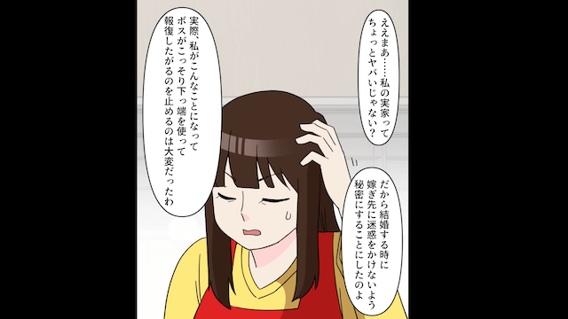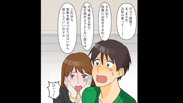 夫と女性は捏造した証拠で主人公を陥れようとしますが、主人公の弁護士は実家と関わりが深い人物のため、全面的に主人公を信用して夫たちの嘘にはだまされませんでした。 そんな様子を見た夫が「関わりが深い?一体なんのことだ?」と尋ねると、弁護士は主人公の実家が地元で有数の名家であることを明かし、夫と女性はまさかの事実に青ざめます。