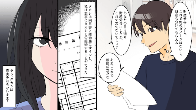 財産分与が行われることを確認した夫は、「これで離婚成立だな」と言って離婚届にサインをしました。
