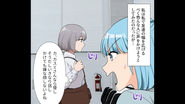 同級生たちは主人公に嘘を教え、陰で馬鹿にしていました。 一方、主人公は友人の幅を広げるために、いろいろな人に声をかけようとするのですが…。