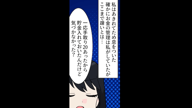 主人公が正当な財産分与と慰謝料を要求すると、夫は慌てて「俺の稼ぎは俺のものだ」と主張しました。 しかし主人公はパートをしていたため、夫婦の貯金に自分の稼いだお金を入れていて…。