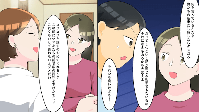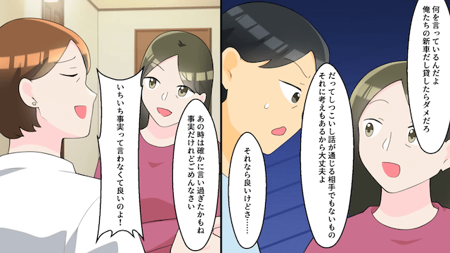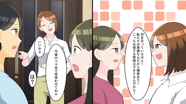 今回は『私が愛車を購入すると兄嫁「貸りるわね!」夫「は?」→数日後、兄嫁が事故った結果』を紹介します。 ママ友会での騒動からしばらく経ったころ、新車を購入した主人公夫婦。 すると話を聞きつけた兄嫁が家にやってきて…。