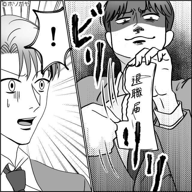 怒った課長に「高卒はさっさと辞めろ!」と言われたため、すぐに退職届を提出した主人公。 しかし素直に受け取るのは癪に障ると感じた課長は、退職届を破いてしまいます。