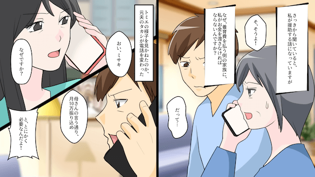 今回は『元義母が「急だけど先月から養育費が増えてるから」と言うので、そのまま無視した結果』を紹介します。 元義母から娘の養育費という建前で援助を求められた主人公。 主人公が詳しく話を聞こうとするも、元義母は「とにかく!来月から10万振り込んで!」と勝手に話を進めて…。