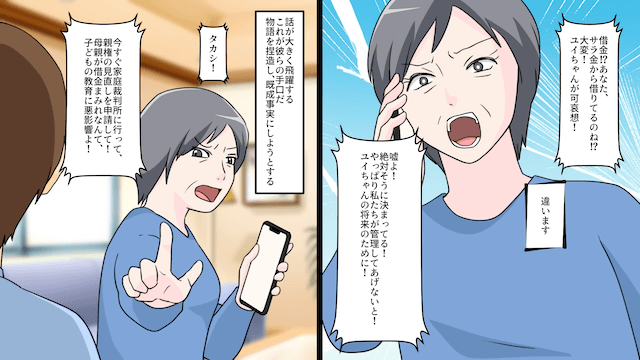 主人公がそれを断ると、元義母は勝手な妄想で話を作り上げ、娘が可哀想だと騒ぎ立てたのです。