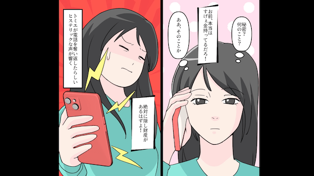 そして元義母が黙り込むと、元夫が主人公に「お前、本当はすげぇ金持ってるだろ!」と言い出して…。