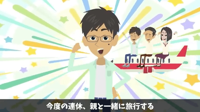 主人公は毎月夫にお小遣いを渡す義両親を疑問に思っています。 そしてある日、夫は「今度の連休、親と一緒に旅行する」と言ってきました。