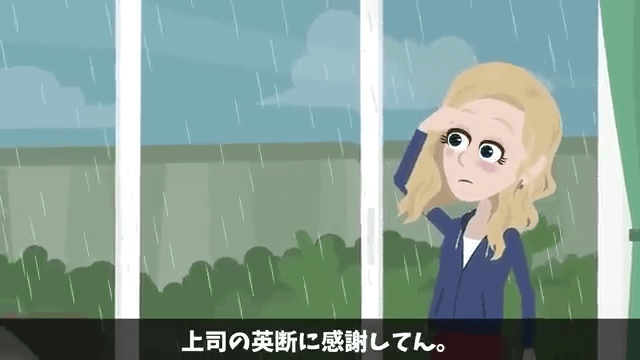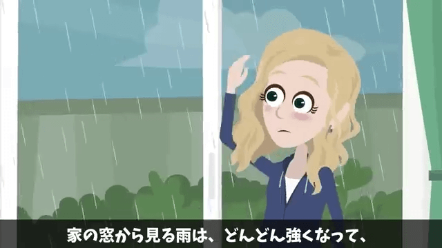 今回は『帰省中の夫に連絡…私「今どこに居る?」夫「実家だよ」⇒すべてを把握した私が即引っ越しした結果』を紹介します。 これまでにないような大雨が降るという予報が出たため、主人公の職場は一気にざわつきました。 すると上司が「仕事はいいから、今すぐ全員帰宅!」と言い…。
