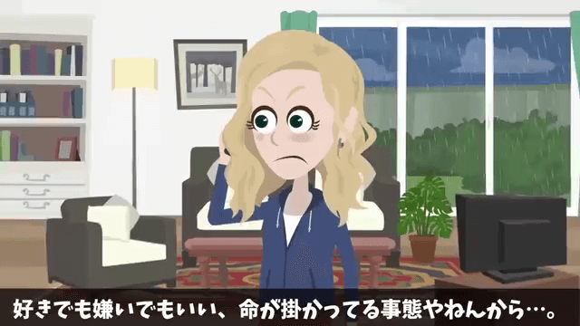 テレビを見ていた主人公は義実家が大変なことになっていると知ります。 そこで夫に電話をかけるのですが、何度かけても夫が出ないため、義母に電話をかけることにしました。