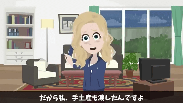 主人公は夫に手土産を持たせたことを義母に伝えます。 すると義母は「手土産どころか、あの子、来ていないわ」と言いました。