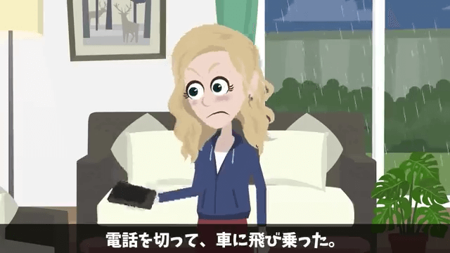 夫が嘘をついていたことがわかり、ショックを受ける主人公。 しかしそれよりもすぐに義両親を助けなければならないと考えた主人公は、今から向かうことを義母に伝えました。