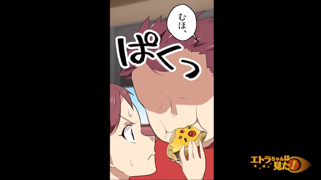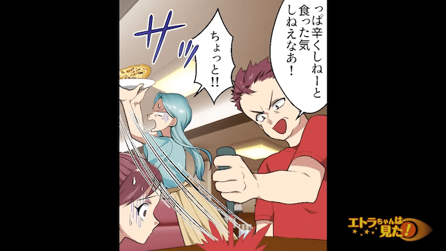 主人公家族が久しぶりに外食をしていたときのことです。 妹の注文したピザが届くと、父はピザを横取りし、勝手にタバスコをかけようとしました。