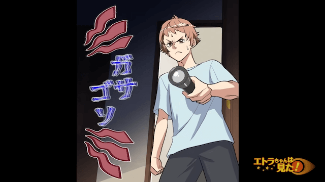 すると暗闇の中から人影が現れ、主人公は驚いて…。