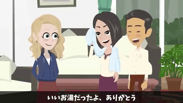 夫の浮気を確信した主人公は、義両親に正直に話さなければならないと考えます。 そんな中、お風呂から上がってきた義父は「いいお湯だったよ、ありがとう」と主人公に言いました。